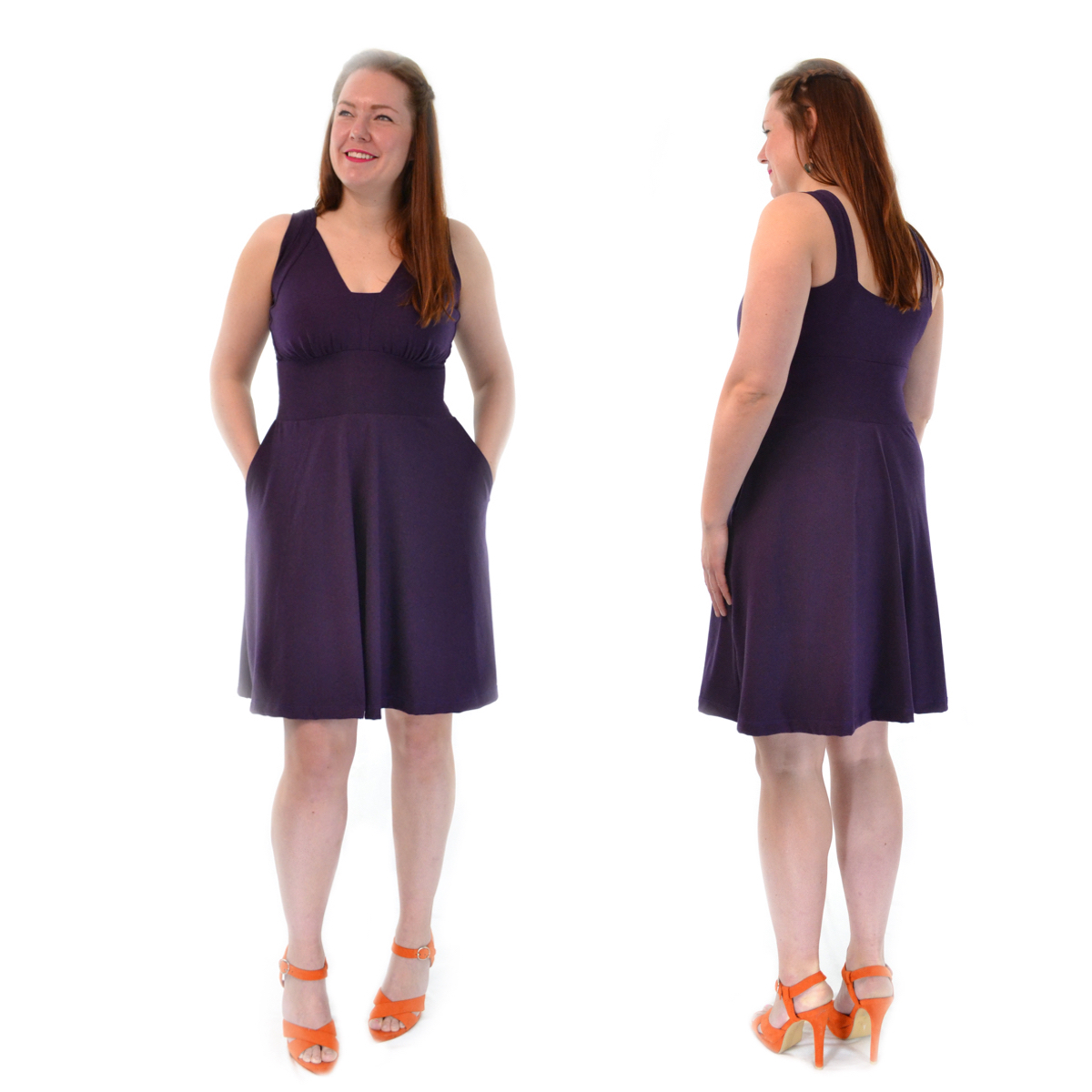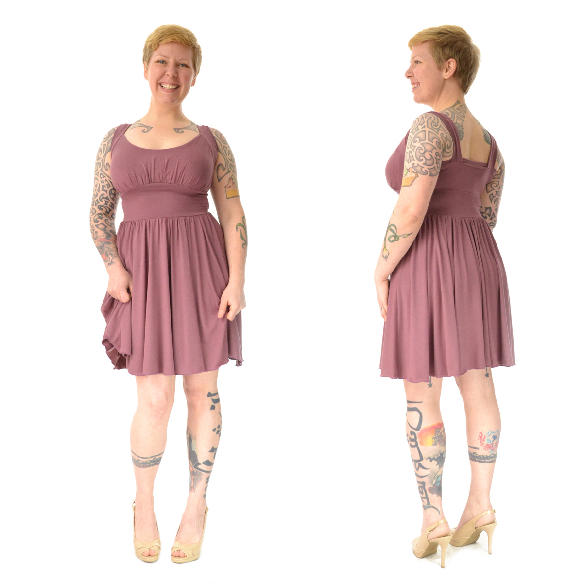 Mix & Match Dress: Tab bodice, strappy back, with a pocketed a-line skirt in Plum