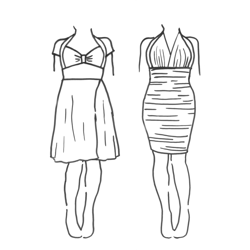 A Mix & Match dress (or top!) starts with a basic halter bodice. First, you choose a neckline - sweetheart? faux wrap? simple scoop? If you're not a fan of halters, you can make it strappy (and very bra-friendly) instead. Or take it all the way to sleeveless, with full back coverage.