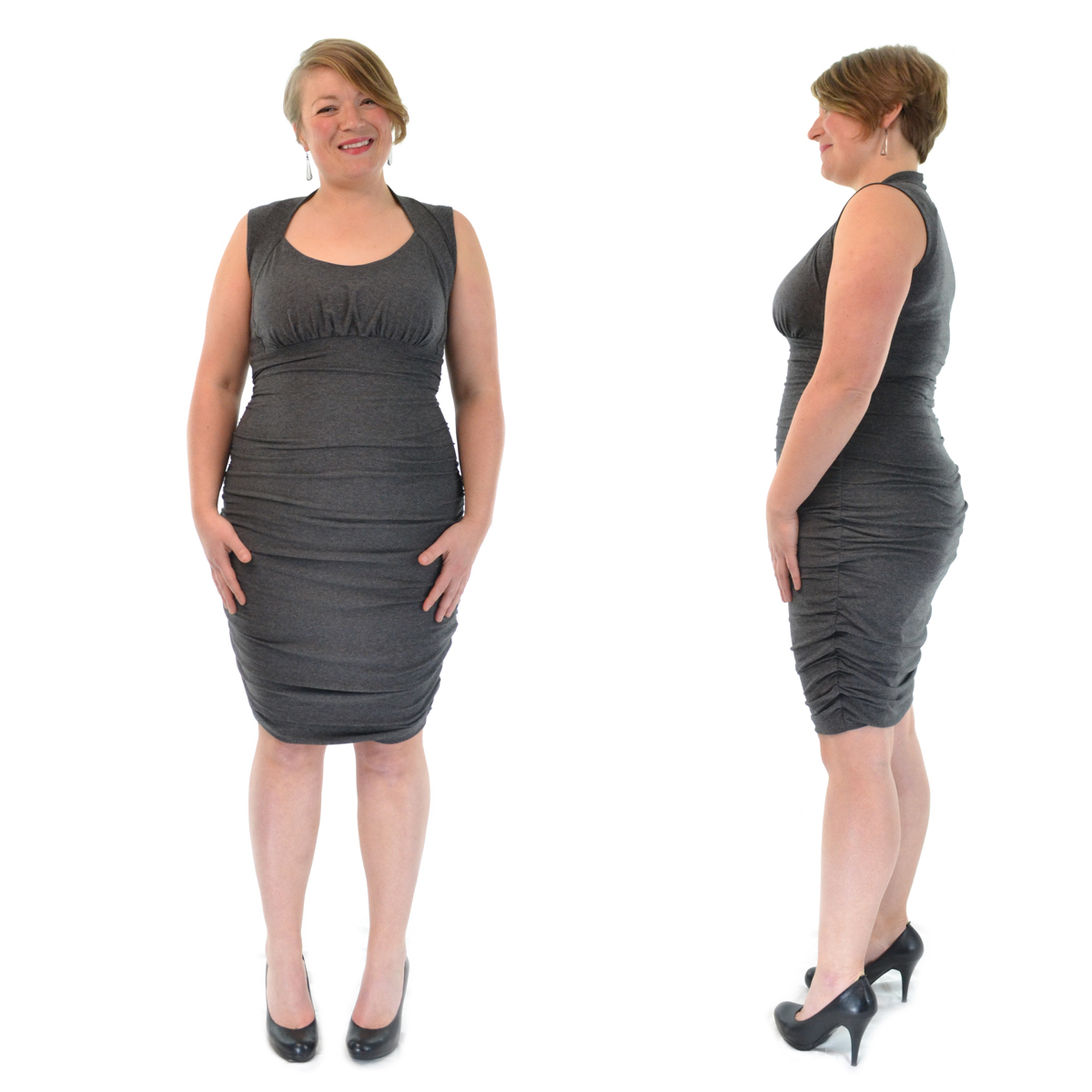 Mix & Match Dress: Frances bodice, sleeveless, with a ruched skirt in Granite
