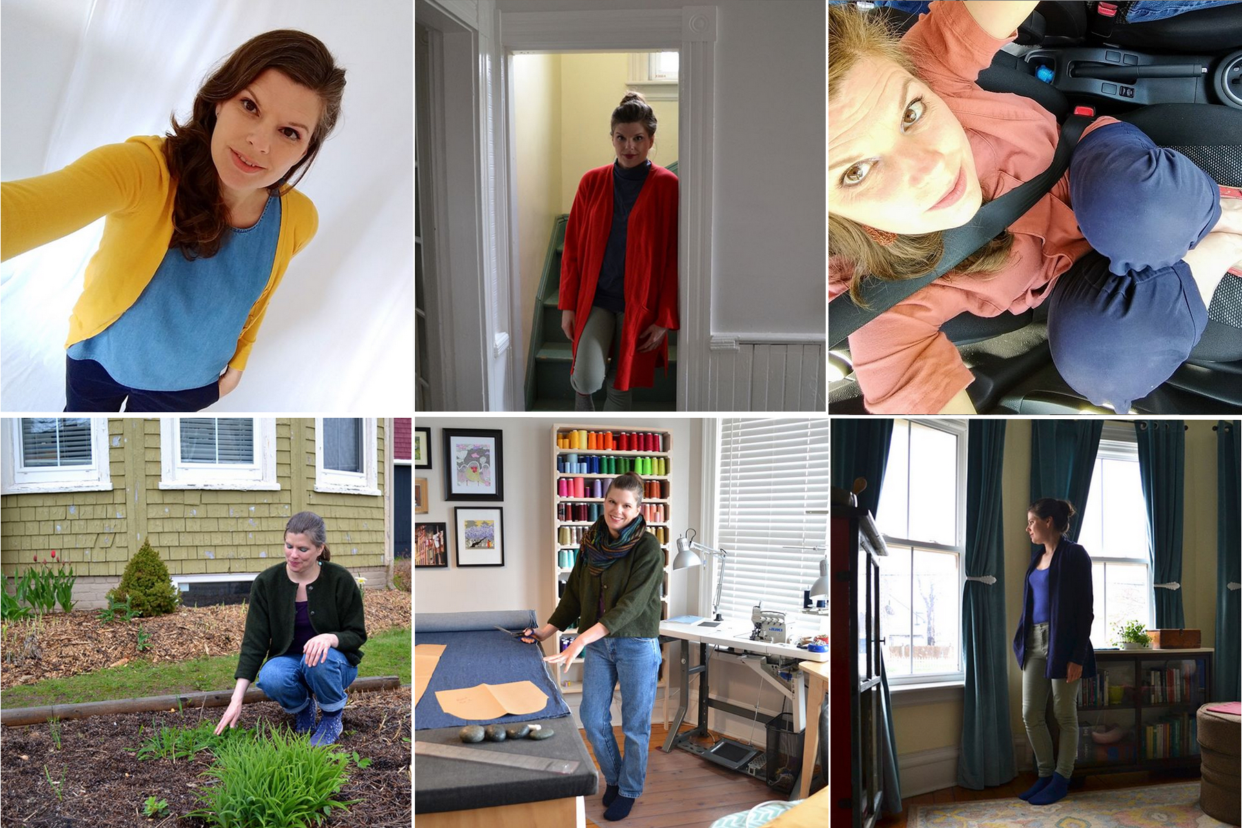 Both woven tanks needed to be taken in. I have also taken in the red long sweater, plum tiny tee, navy khaki pants, and green pj bottoms. I pinched the top outer shoulder on the green woven hemp tee.